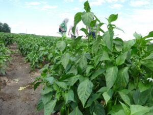 Beikräuter werden im Bio-Anbau im Juni-Juli fast täglich von Hand geharkt, drei Komplettdurchgänge in der Saison. Paprika braucht es heiß und sonnig – ein ungarisches Sprichwort sagt: „Paprika liebt nur den Schatten des Arbeiters.“