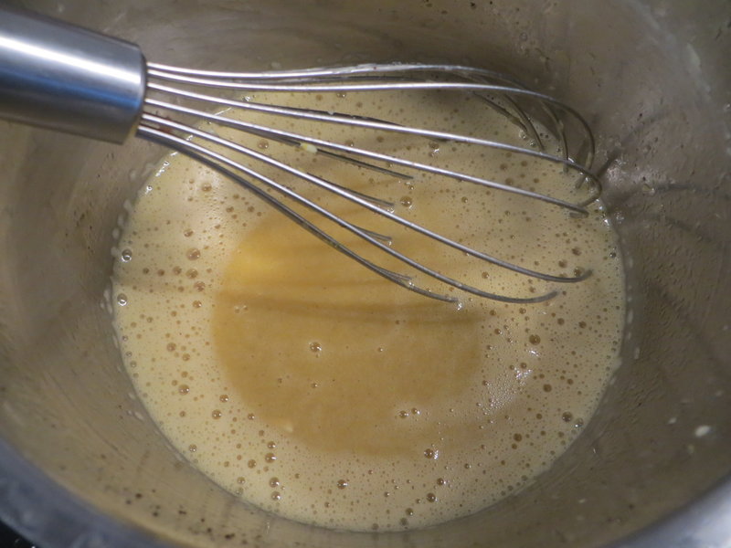 Dieses Gericht funktioniert in etwa genau so. Alle Zutaten werden in einem Topf bei sehr niedriger Hitze und mit viel Rühren so lange erhitzt, bis es andickt. Das sind dann die Eier, die stocken. Der Trick ist es, so viel zu Rühren, dass die Masse homogen bleibt und die Eier nicht ausflocken – sonst gibt es eine flüssige Masse mit vereinzelten gekochten Eierstückchen, was das Gericht dann doch etwas ruiniert. Die Technik dazu ist die niedrige Hitze und viel Rühren. Das ganze kann dann gut und gerne bis zu 30 Minuten dauern, aber wer weiß was er tut kann es bei etwas höherer Hitze in kürzerer Zeit schaffen – ich gehöre nicht dazu, deswegen „low and slow“. Dann wird alles gut.